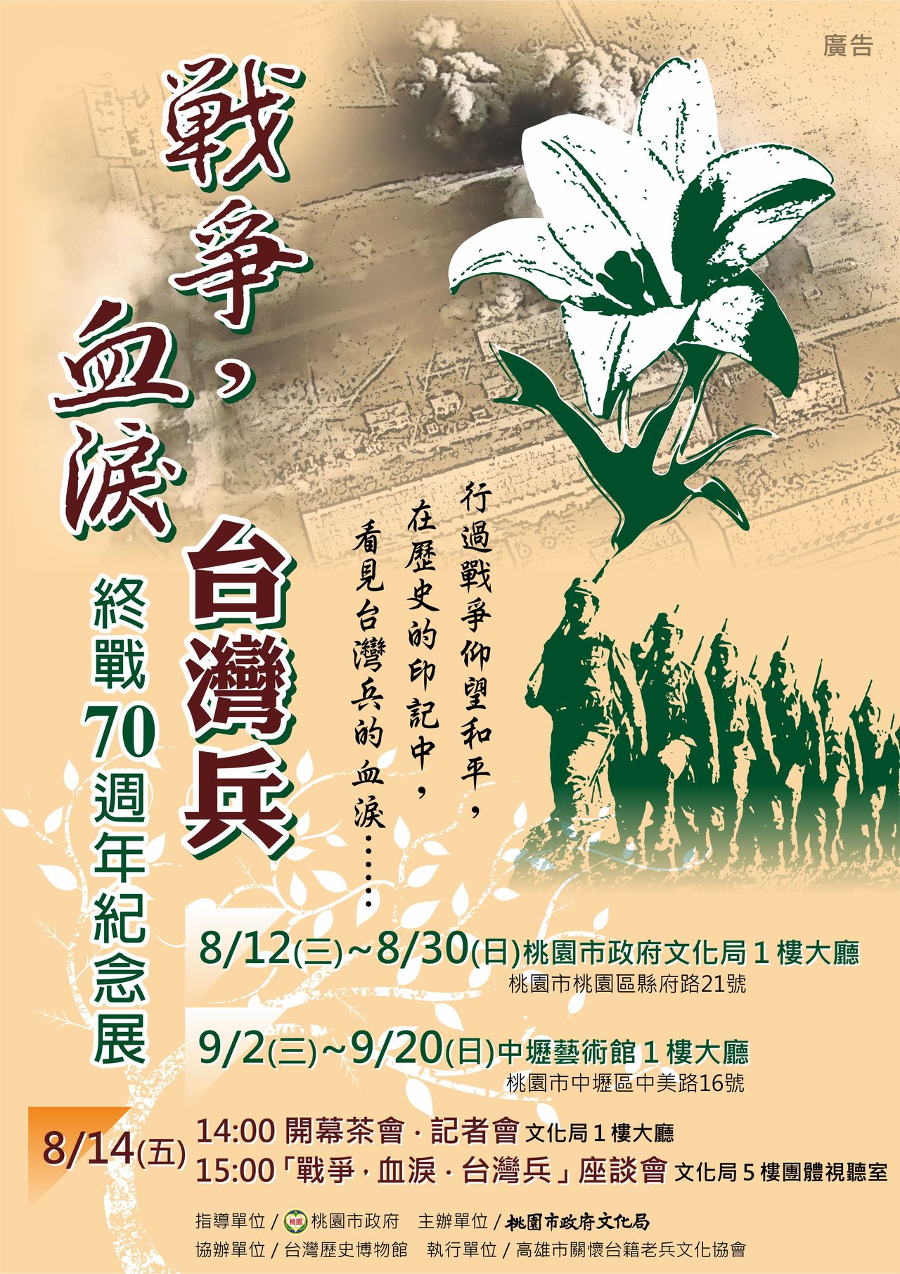 08/12-09/20 戰爭˙血淚˙台灣兵-終戰 70 週年紀念展