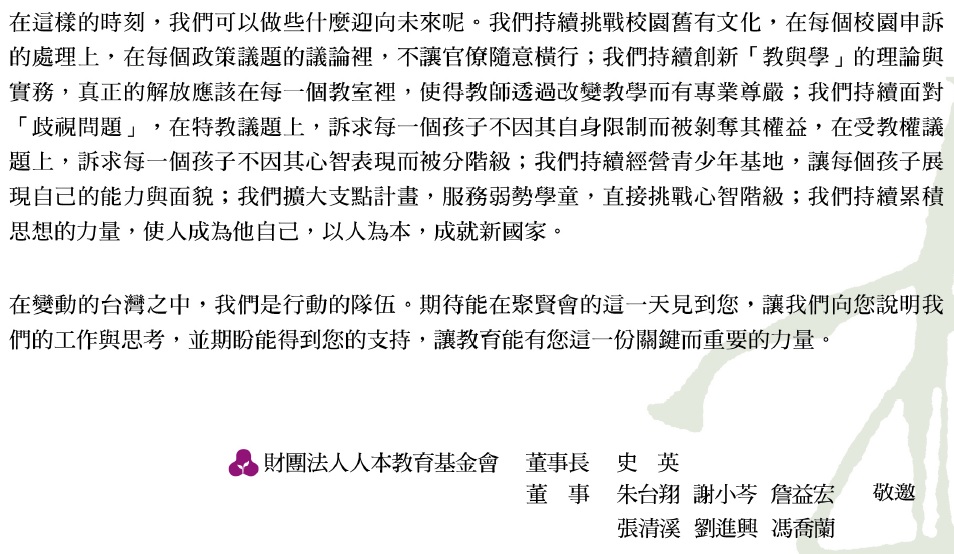 https://www.dropbox.com/s/xq36vc3q9639rdl/2015%E6%9C%83%E8%A8%8A%E7%B7%9A%E 4%B8%8A.pdf?dl=0 2015會訊(工作報告) https://heffund.wordpress.com/ 義賣品目錄 https://www.dropbox.com/s/g9rhl6vh32c1pk1/2015%E4%BA%BA%E6%9C%AC%E9%82%80%E 8%AB%8B%E5%87%BD.pdf?dl=0 聚賢會回函 http://hef.yam.org.tw/ 人本首頁 http://hef.yam.org.tw/fundraising/2015/index.html