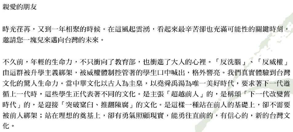 感謝你一直以來的支持鼓勵。這個時候,就又特別需要你的幫忙了。如果可以,敬請捐款支持我們的工作,請多利用回函或直接回信。 如果還能幫忙轉寄給其他朋友,邀請他們一起來,那就太好了。 謝謝你。 祝好 喬蘭