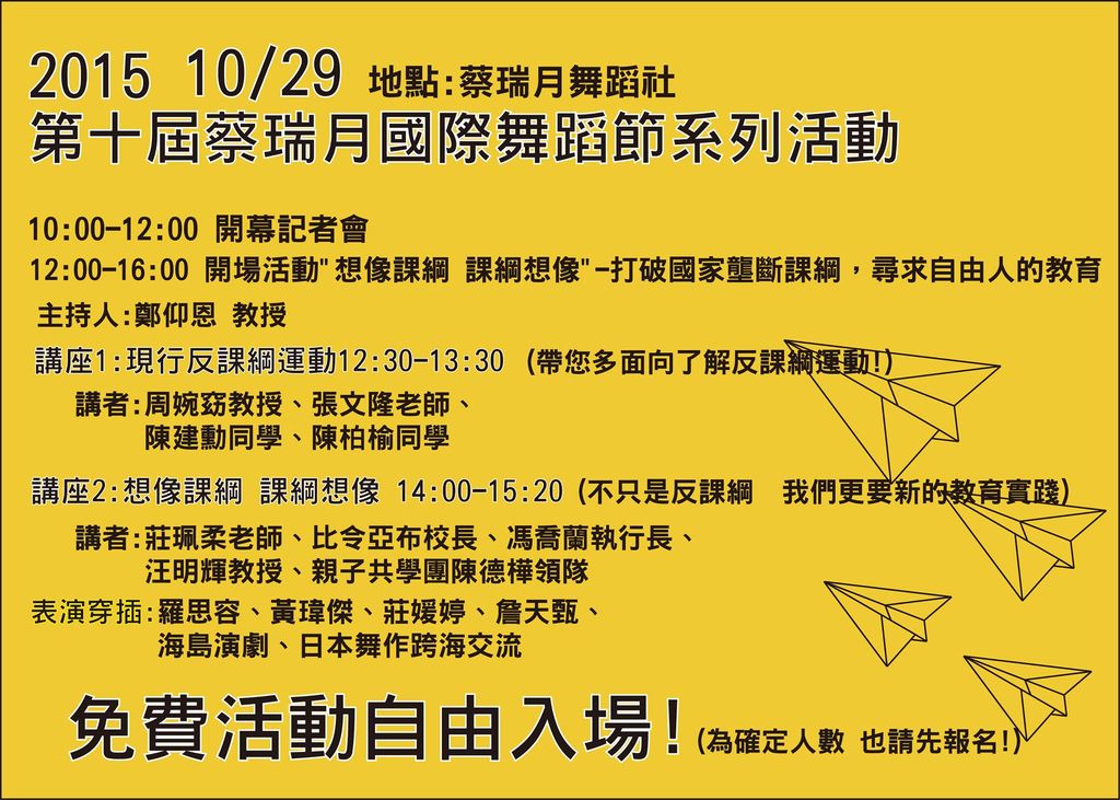 記者會結束之後,下午也將舉行論壇及演出活動。
