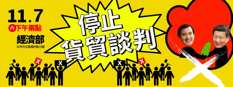 去年318運動退場聲明:「強烈要求馬政府在(監督條例)法制化完成之前,不得再與中國洽談或簽訂任何協議」。然而,夏張二會卻達成「推進貨品貿易協議商談,爭取今年年底前獲得共識與成果」之結論;媒體並報導十一月上旬雙方在台灣進行第十二輪談判,十一月中旬APEC鄧(振中)高(虎城)會將宣布談判完成。為此,經濟民主連合等各團體共同發起「停止貨貿談判/1107遊行」行動,經民連召集人賴中強表示:將全力阻止此一違背民主,危及食品安全,損害農民權益與勞工生計,犧牲基層農工圖利石化、面板、汽車業十大財團的貨貿談判。