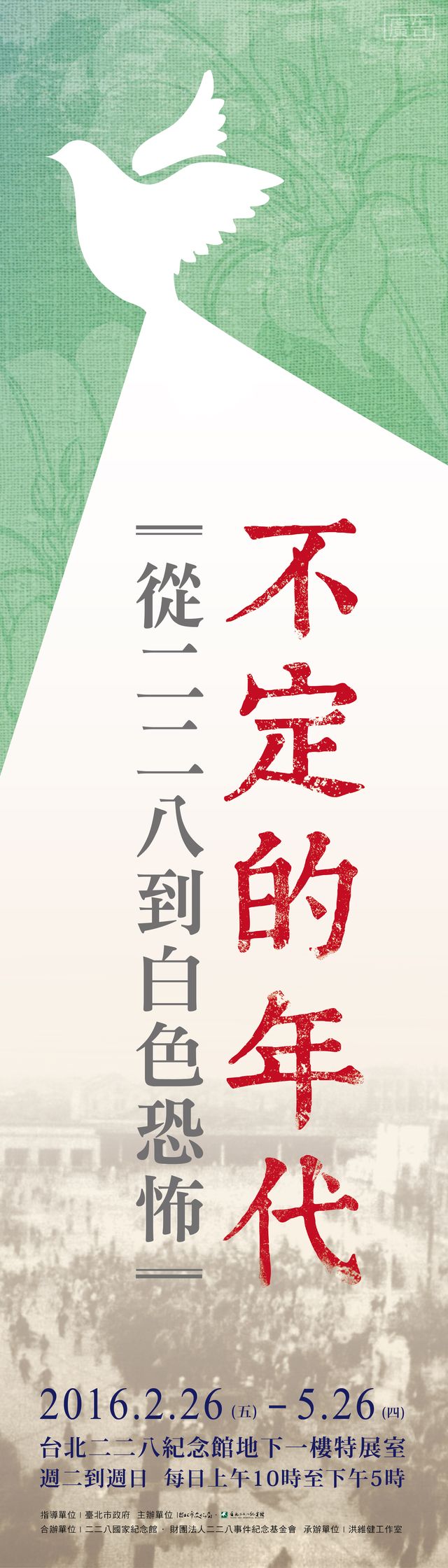 今年是二二八事件69週年,為追思反省那段不安定的年代,台北二二八紀念館於2月26日上午10時舉辦「不定的年代:從二二八到白色恐怖」特展開幕記者會,文化局謝佩霓局長特別蒞會致詞,另有二二八事件紀念基金會廖繼斌執行長、臺灣戒嚴時期政治受難者關懷協會蔡寬裕理事長,以及多位二二八事件或白色恐怖受難者前輩或家屬蕭錦文先生、林黎彩女士、林炳炎先生、黃秀婉老師、宋敏烈先生,和相關貴賓張弘毅教授、侯坤宏博士、張欽鵬主任、楊振隆秘書長、黃永銓會長、陳文照老師、潘小俠老師等到場參與盛會。