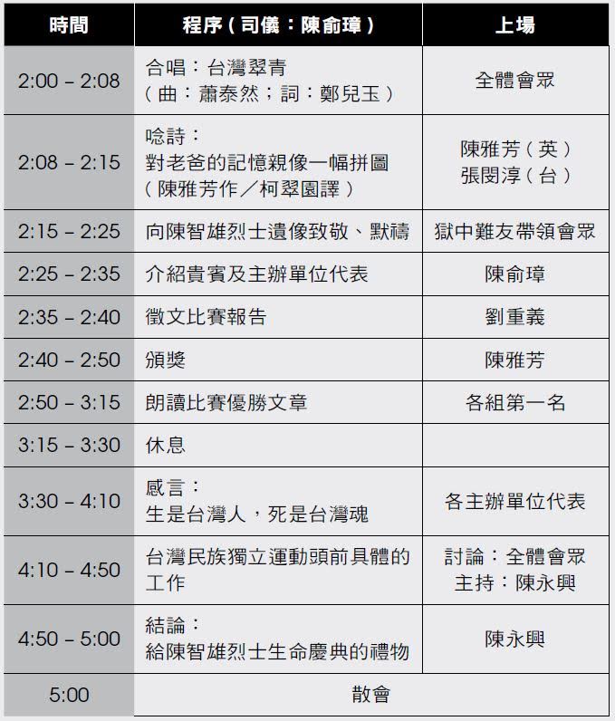 台灣民族英雄陳智雄烈士百年冥誕生命慶典