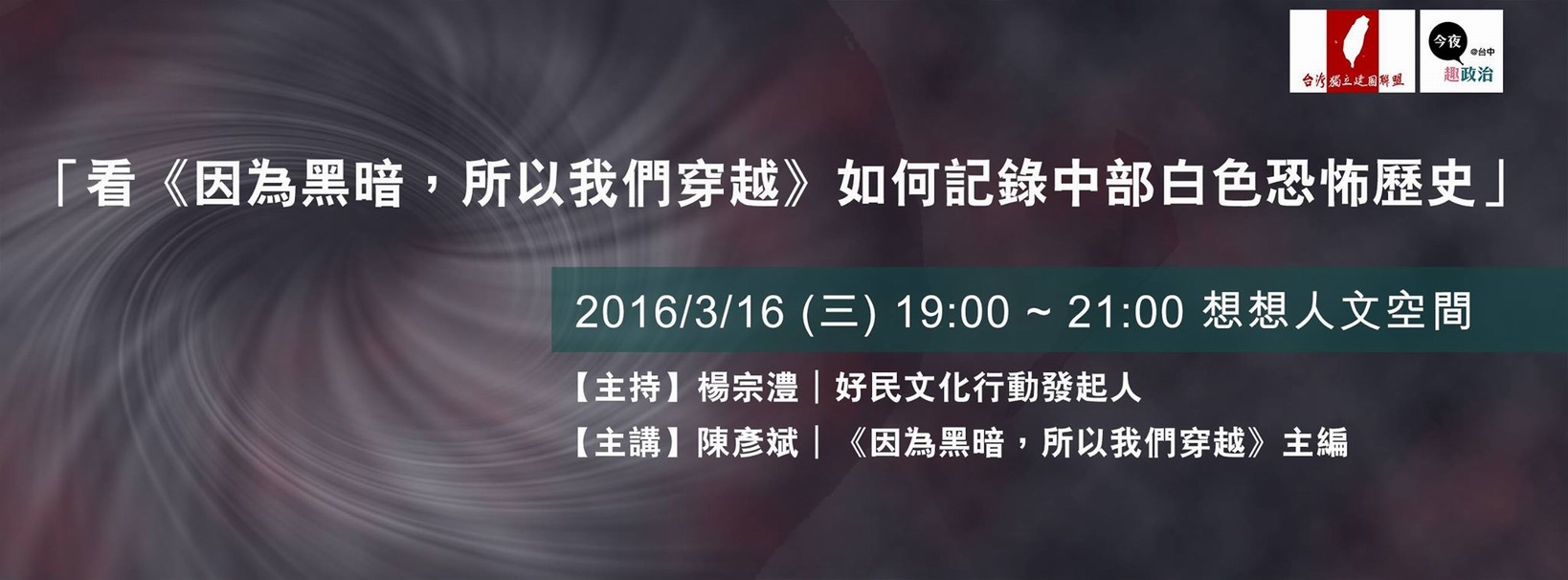 【今夜趣政治@台中】─「看《因為黑暗,所以我們穿越》如何記錄中部白色恐怖歷史」
