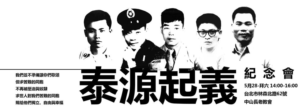 泰源起義是台灣民族獨立運動非常重要的事件。民進黨重新執政後,希望長期被中國黨隱藏的關鍵文件能公開,讓有專業背景的研究學者拼出泰源起義的歷史真貌,咱尤其關心那些配合起義行動的充員兵的生死下落。