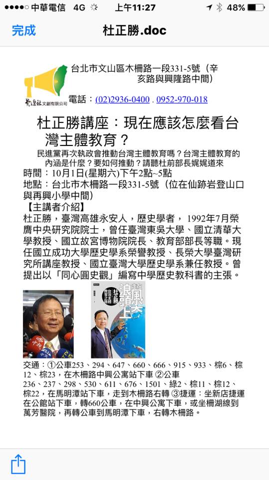 杜正勝講座:現在應該怎麼看台灣主體教育?