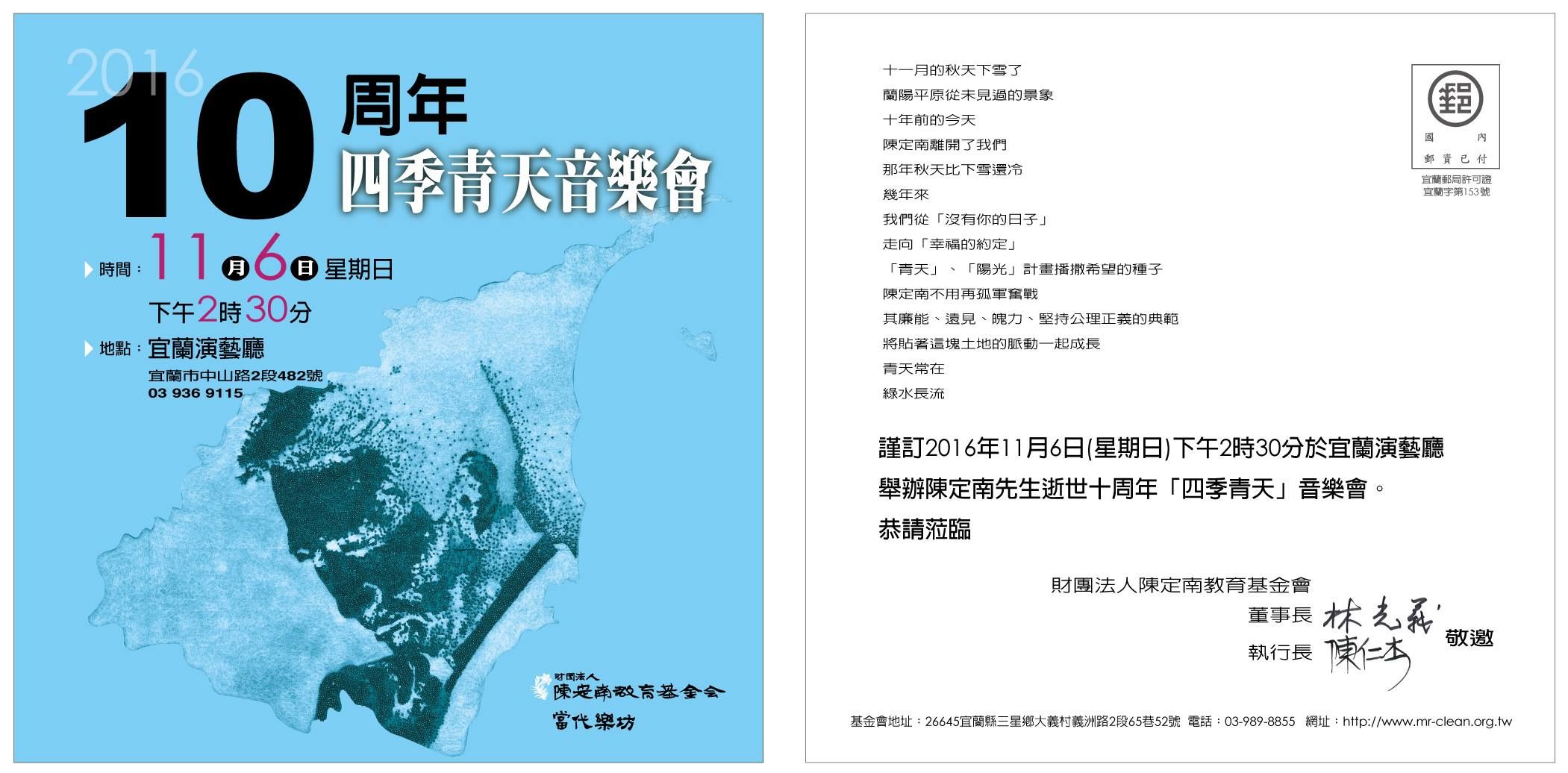 陳定南先生逝世十周年【四季青天】音樂會