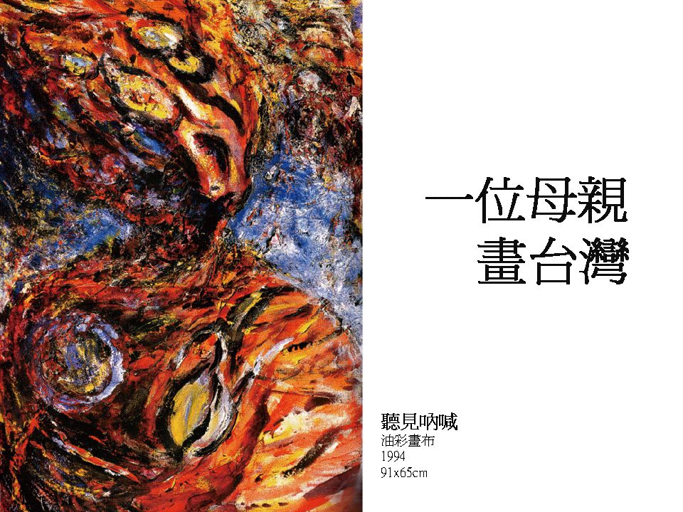 以「一位母親畫台灣」為主題,是李素貞一種自我生命體驗的感性自剖,如果不是對這片土地的遭遇投入了深深的情感,她無法找到力量去召喚為台灣歷史處境吶喊的勇氣!