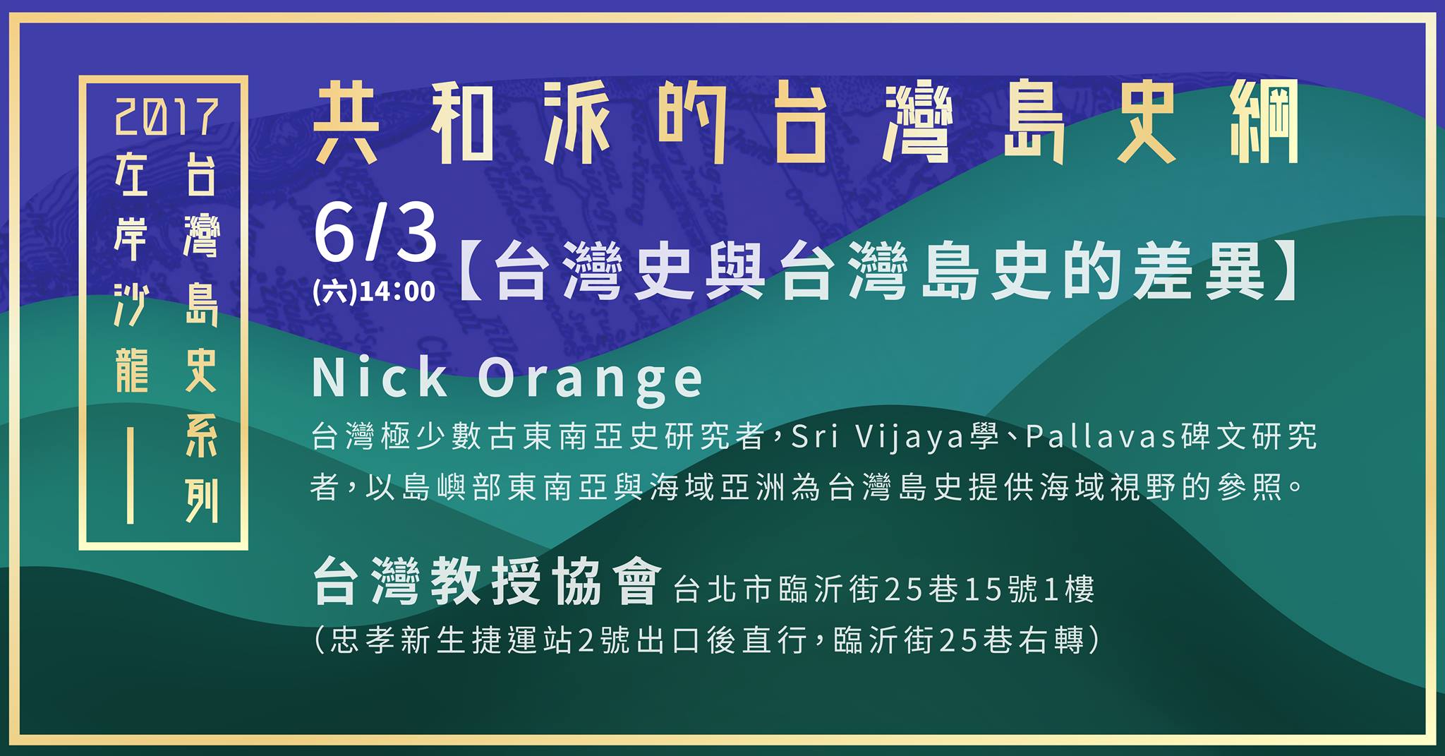 【講者】Nick Orange,台灣極少數古東南亞史研究者,Sri Vijaya 學、Pallavas 碑文研究者,以島嶼部東南亞與海域亞洲為台灣島史提供海域視野的參照。