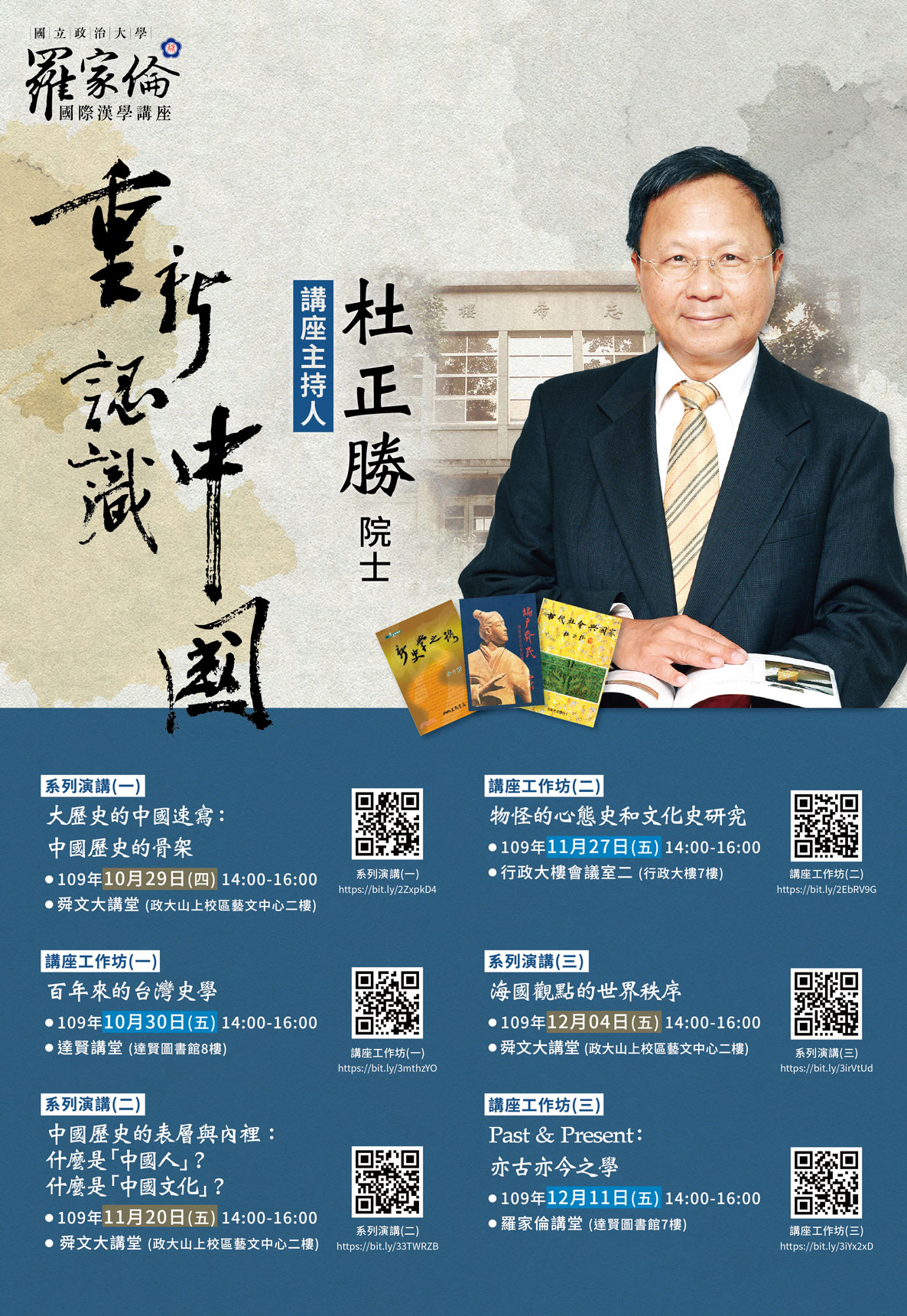 109年本講座非常榮幸聘請中研院杜正勝院士為第二任講座主持人,以「重新認識中國」為主題,帶來一系列精采的演講以及講座工作坊。