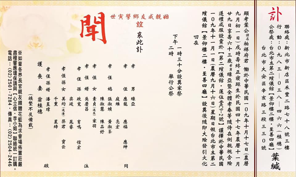 11/01 葉柏祥先生公祭@台北二殯