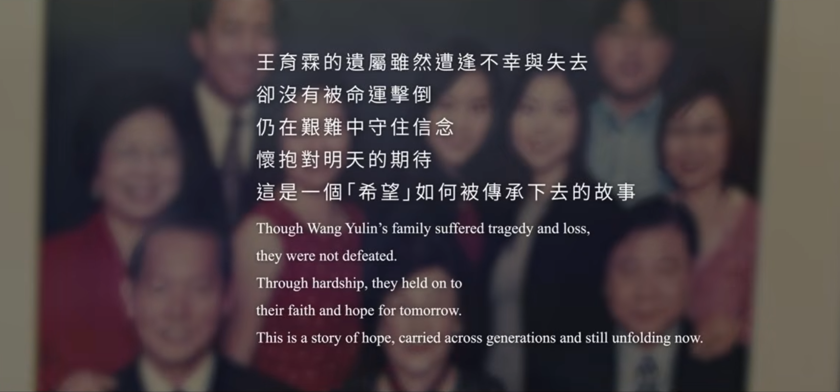 王育霖的妻子在恐懼中沉默了大半生,堅忍地扶養孩子,但在晚年選擇說出,成為記憶的守護者。王育霖的兩個兒子,一個在美國投入民主運動,一個在台灣行醫並推動平反。如今第三代、第四代散居三地,仍在傳承這份信念。