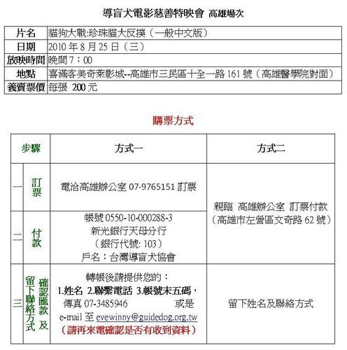 除了台北的場次之外,高雄的朋友也可以和導盲犬一起看電影囉!!