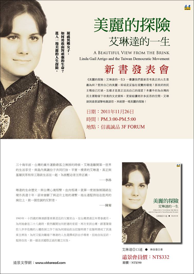 11月26日星期六下午三點至五點於信義誠品三樓艾琳達老師將舉行口述自傳發表會,歡迎蒞臨共襄盛舉!