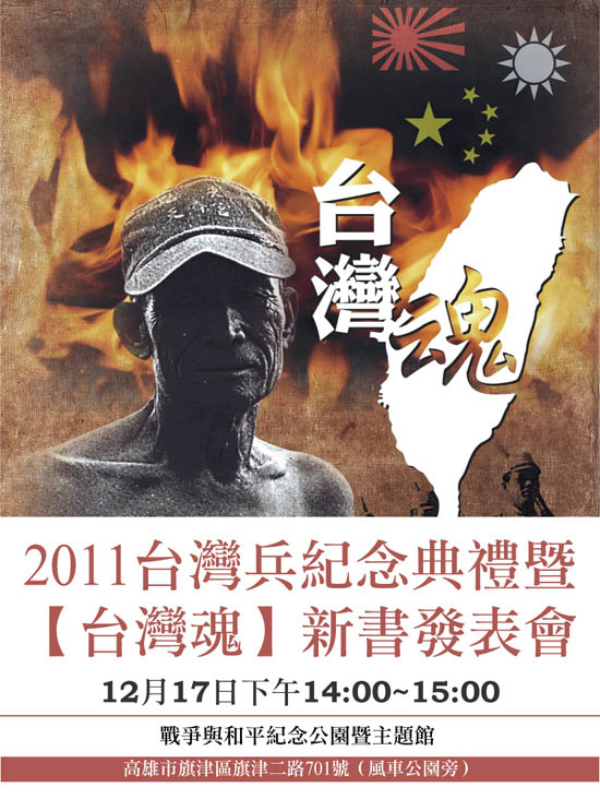 本會謹定於2011年12月17日(六)下午2時舉辦2011台灣兵紀念典禮暨“台灣魂“新書發表會,誠摯邀請您的蒞臨!