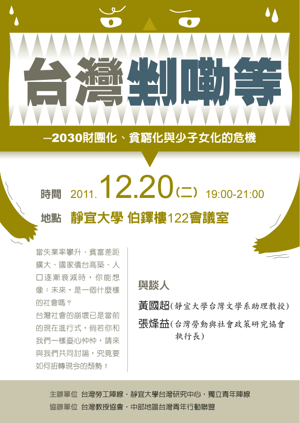 主辦單位 台灣勞工陣線‧靜宜大學台灣研究中心‧獨立青年陣線