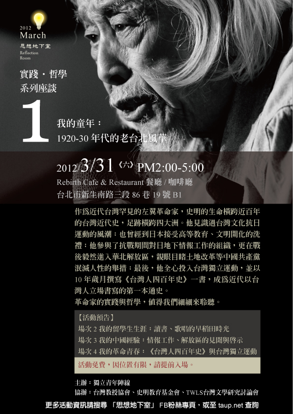 主辦:獨立青年陣線 │ 協辦:台灣教授協會、史明教育基金會、TWLS台灣文學研究討論會