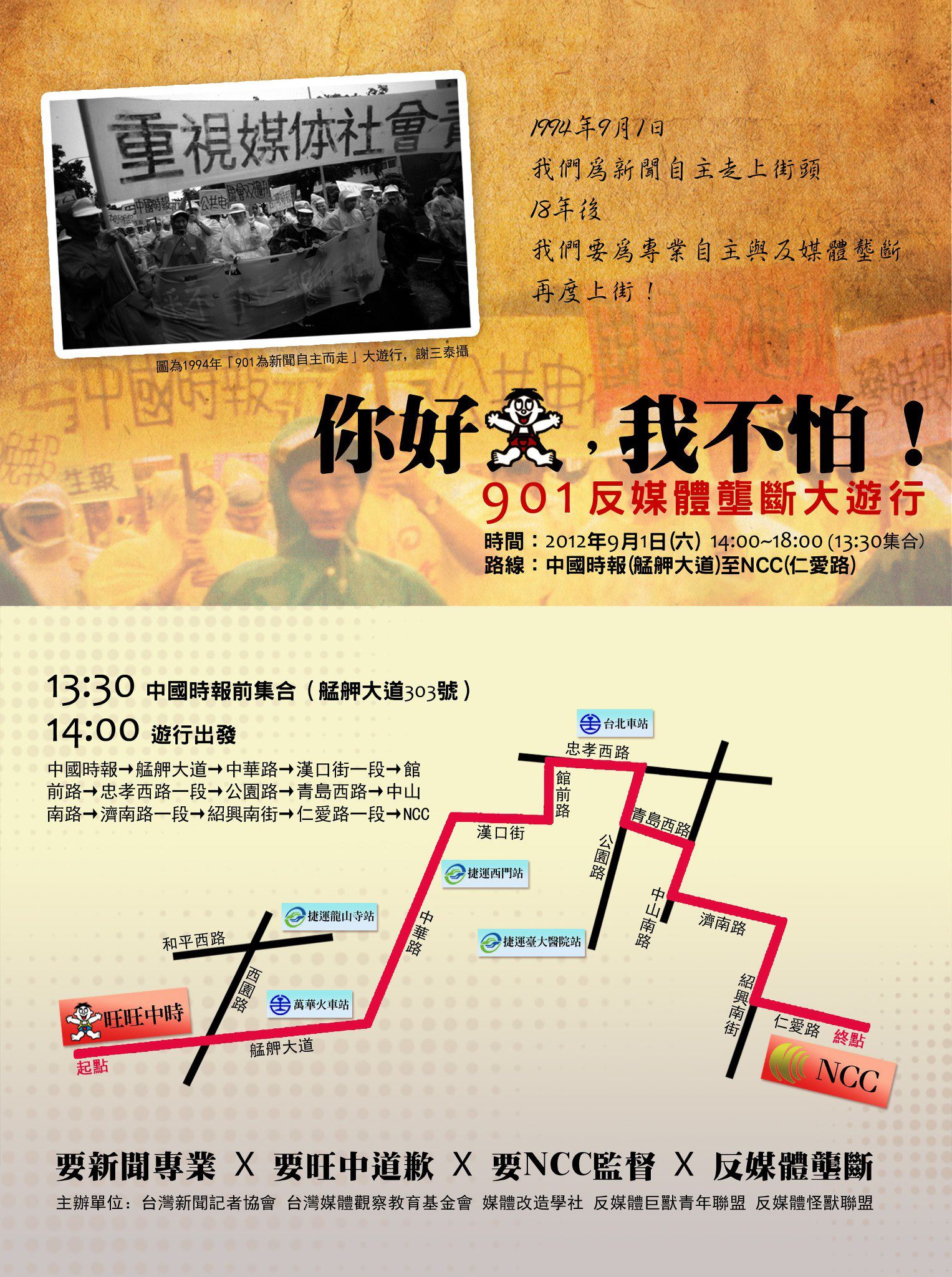 遊行路線:中國時報(艋舺大道)至NCC(仁愛路)