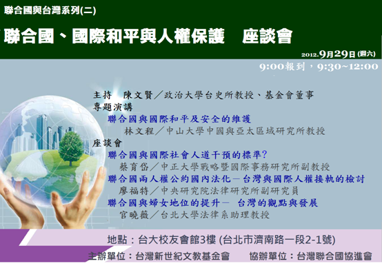 10月14日(週日) 「台灣與聯合國及相關組織」座談會