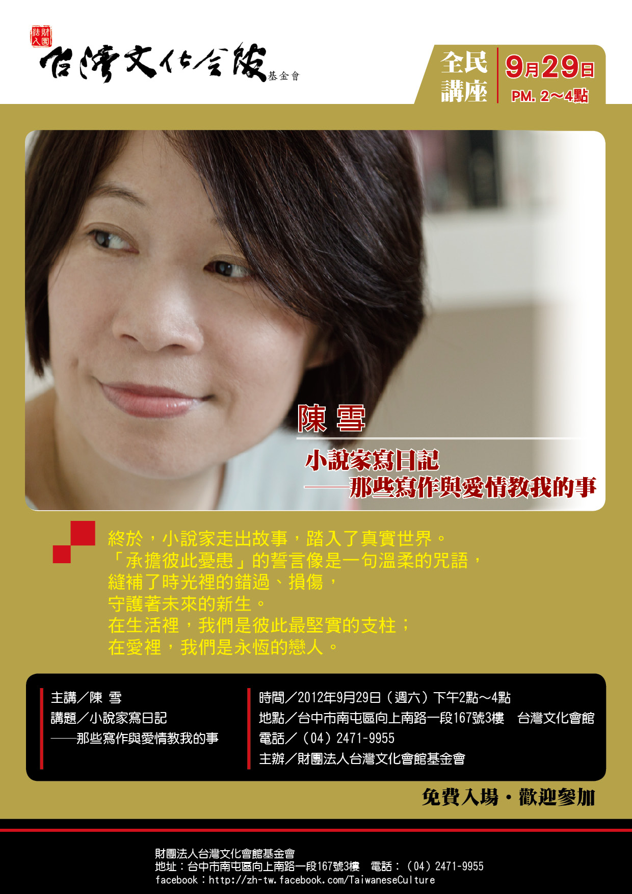 講題:小說家寫日記──那些寫作與愛情教我的事