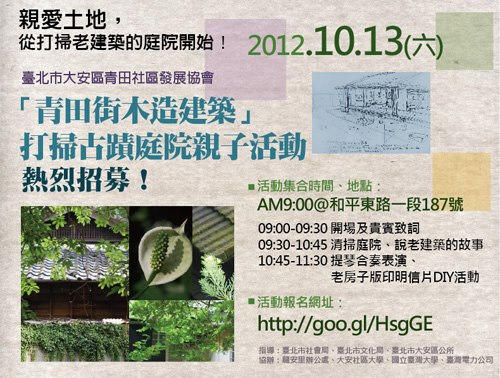 10/13 「青田街木造建築」打掃古蹟庭院親子活動