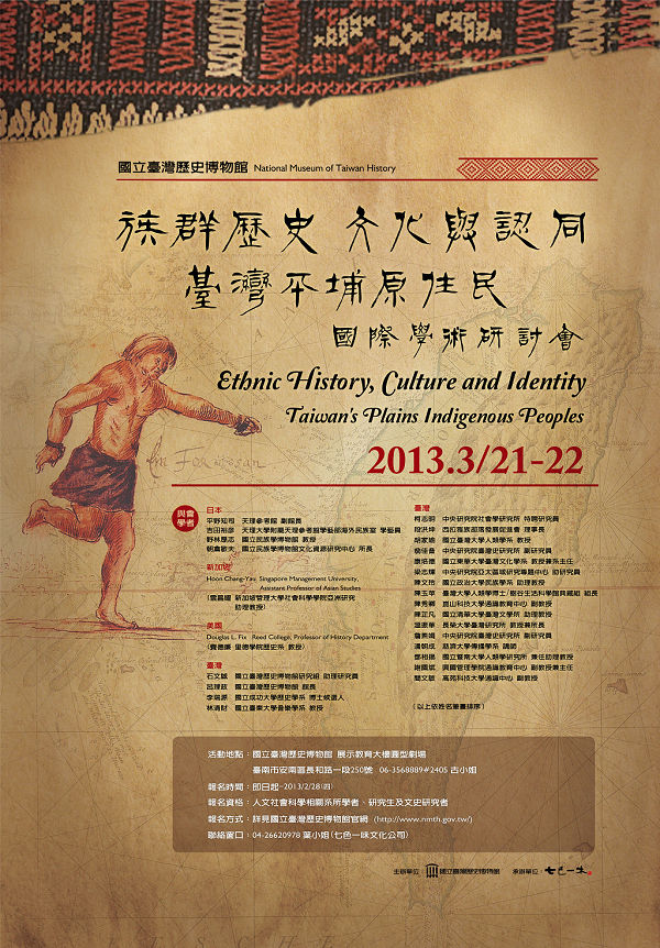 本館配合「看見平埔:臺灣平埔族群歷史與文化特展」的開展,特別舉辦「族群歷史、文化與認同:臺灣平埔原住民」國際學術研討會,希冀呈現平埔原住民族的歷史、文化與認同等面向的各種變遷、適應、融合、重生的樣貌與歷程。此次研討會邀集國內外從事平埔研究、南島原住民研究的專家、學者與文史工作者,交流討論,呈現各自研究成果。藉由研討會的舉辦,為國內外研究平埔原住民的學者提供一個彼此交流、討論的平臺,進而能對臺灣平埔原住民的研究提出更多值得探討的議題與面向。
