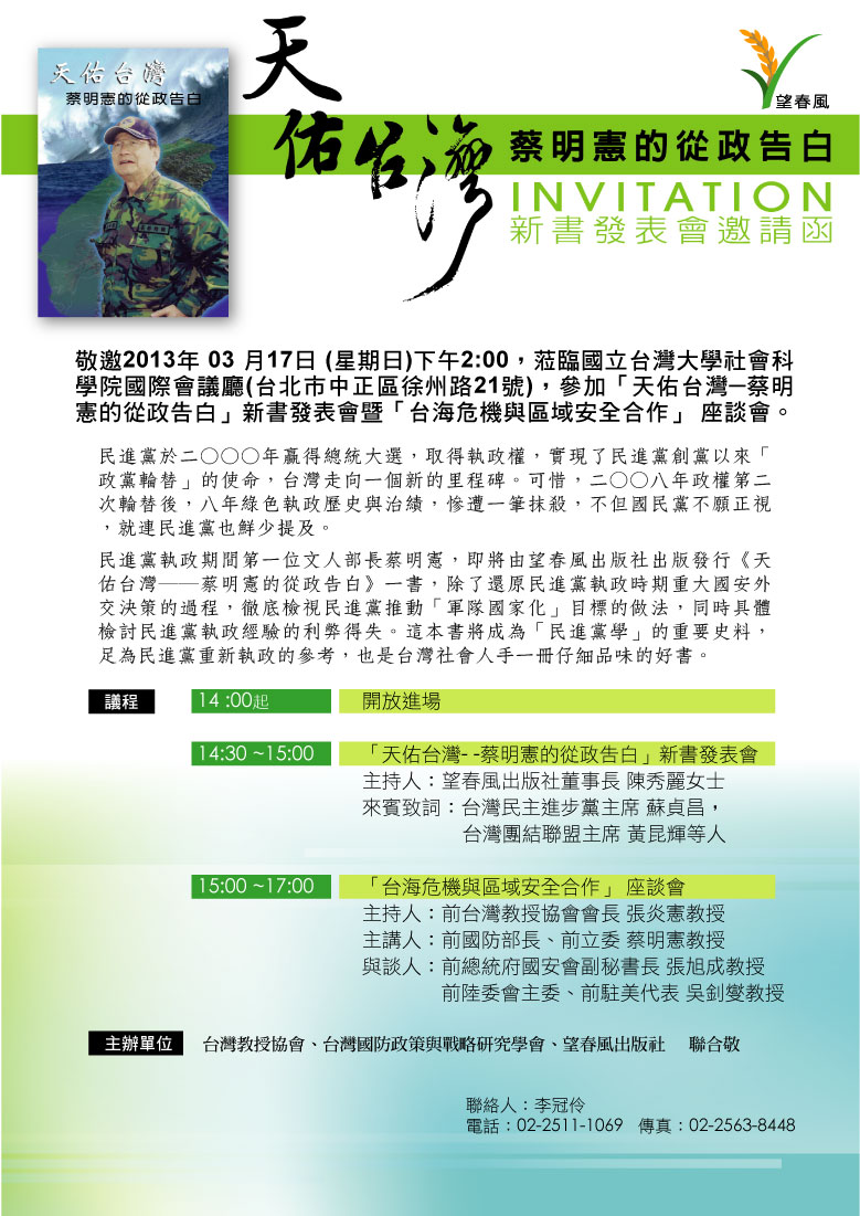 03/17 「天佑台灣」新書發表會暨「台海危機與區域安全合作」 座談會