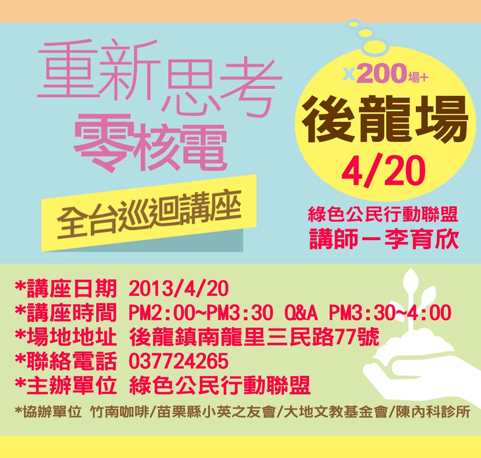 04/20 重新思考零核電巡迴講座@後龍