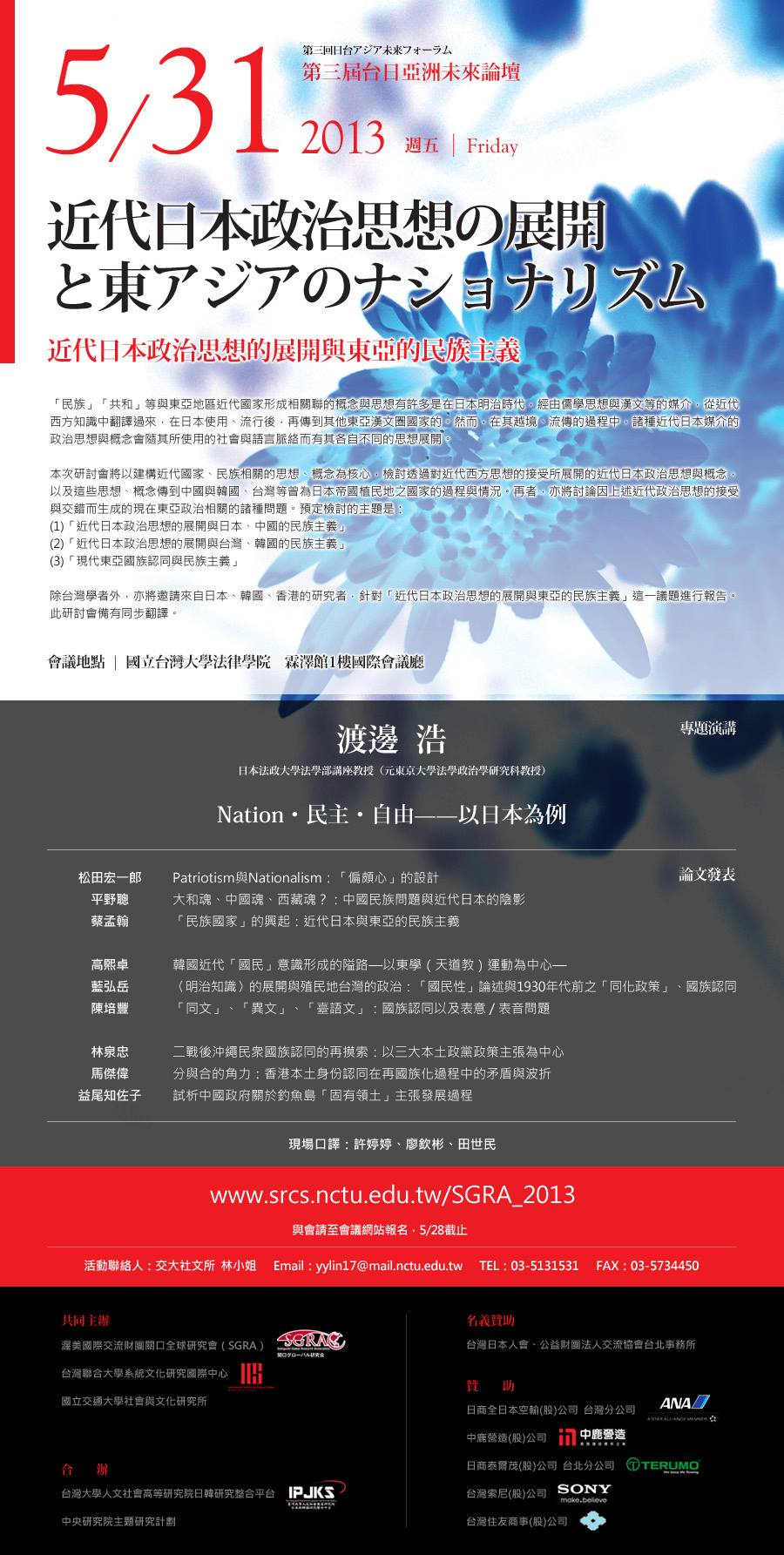 主題為近代日本政治思想的展開與東亞的民族主義,除台灣學者外,也邀請來自日本、韓國、香港的研究者一同參與發表,現場備有同步翻譯。