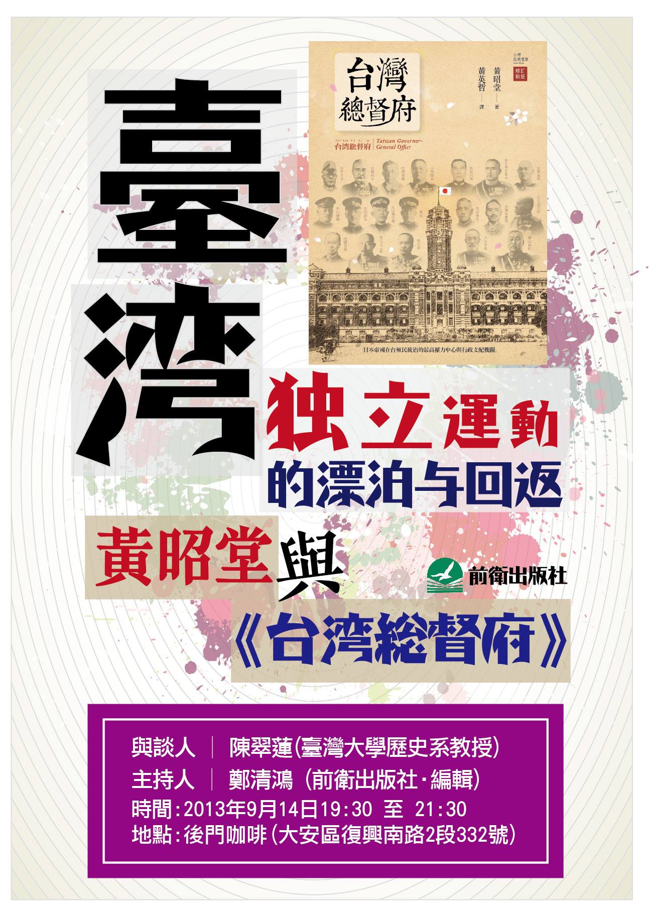 《臺灣總督府》一書作為臺灣史研究的經典著作之一,作者黃昭堂雖然於日前逝世,本書卻於最近重新修訂、再版,薪火相傳。