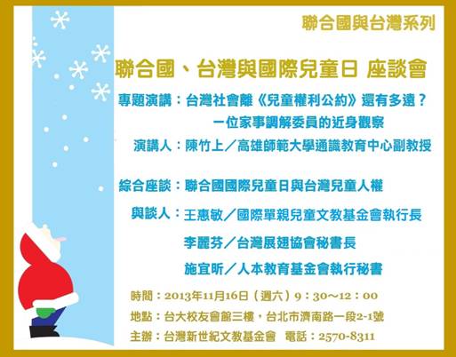 11/16 (週六) 「聯合國、台灣與國際兒童日」座談會