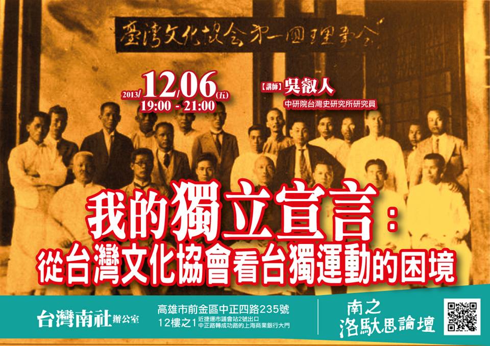 12/06 我的獨立宣言:從台灣文化協會看台獨運動的困境 |