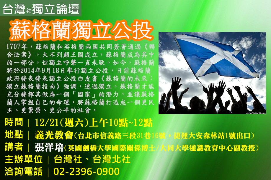 【台灣社獨立論壇】蘇格蘭獨立公投