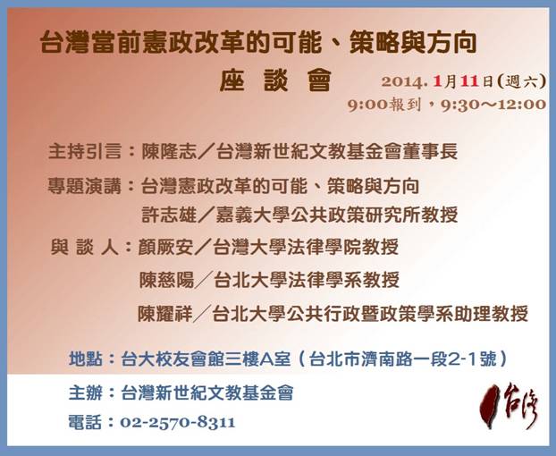 01/11 台灣當前憲政改革的可能、策略與方向 座談會
