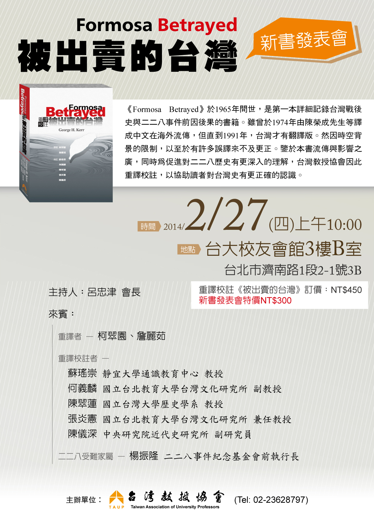 「Formosa Betrayed 被出賣的台灣」新書發表會