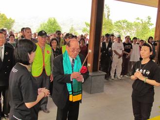 【聯合報╱記者紀文禮╱即時報導】 228台灣神感恩祈福大會今天下午在南投縣草屯鎮「台灣聖山─生態教育園區」的228台灣神紀念碑前登場,由台灣大地文教基金會顧問田再庭主祭,來自全台及海外台灣民眾及日、加代表數百人與會,希望以民主力量展現台灣建國決心,同時並為蔡同榮榮列「台灣神」舉辦感恩祈禱典禮。 台灣大地文教基金會顧問田再庭,今在台灣聖山「228臺灣神」紀念碑前主持追思會。記者紀文禮/攝影