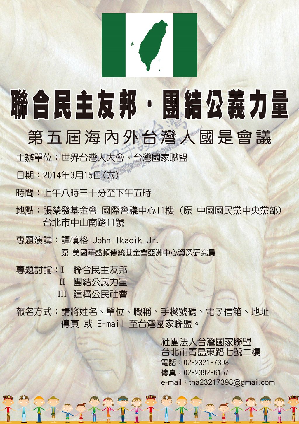 世界台灣人大會敬邀所有海內外台灣人參加這次年會,共同研討台灣如何發展國際關係,團結內部力量追求民主、自由、獨立及安全的願景。