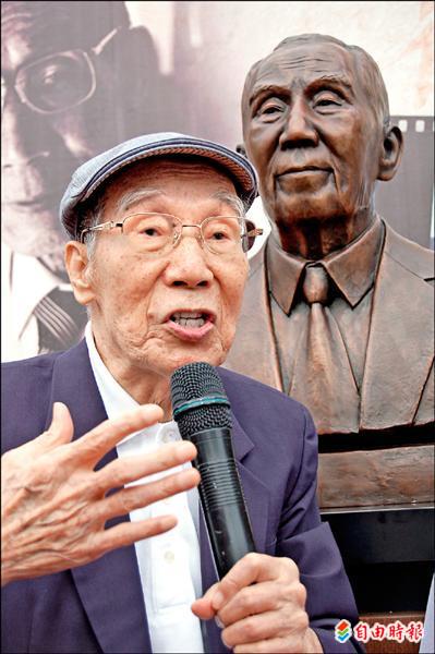 「台灣烏腳病之父」王金河醫師病逝,享年98歲,去年為自己的雕像揭幕致詞時,中氣十足。(資料照,記者楊金城攝)