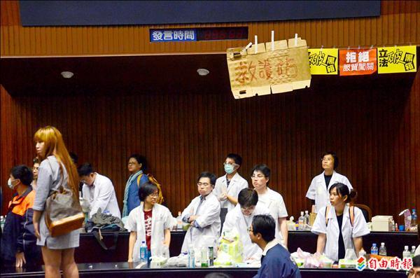 有醫師表示,未來每天下班後會重回立院提供醫護協助,因為這種讓服貿過關的方式,是把人民當白癡、反民主,再不站出來,國家搞不好都要亡了。