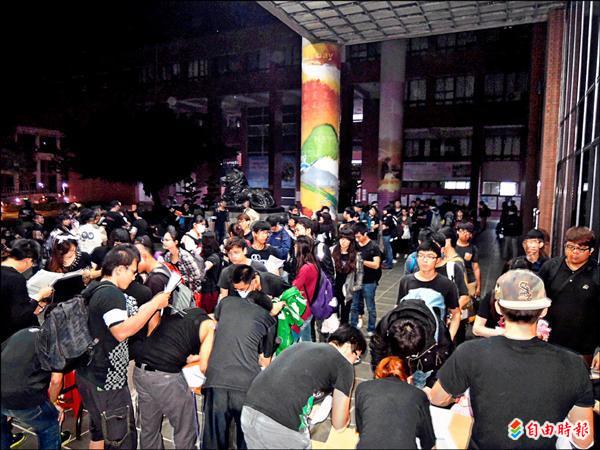 高雄地區學子熱烈響應今天的遊行,從昨天清晨五點到昨晚,分成數批北上。(記者洪定宏攝)