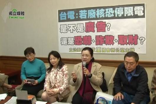 台灣在 2010年整個台灣最熱、電力運轉到最大量時,台灣還有百分之二十三點四的電沒有用到,台灣有太多蚊子電廠、電力,台電卻還說如果停了這百分之十幾的核電,全國就要停電、限電,田秋瑾要問台電,是恐嚇?詐欺?還是取材?因為台電最後如果恐嚇成功,台灣人民就要源源不絕的提供台電幾千億幾百億的前繼續蓋核四廠。