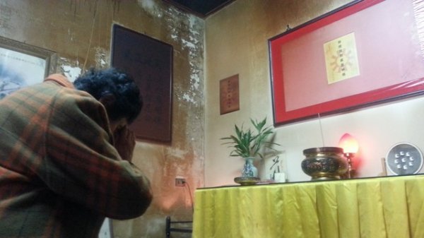 歲末年終,同修們到彰化拜訪敏冰同修,也把握機會參觀她家古董級的道場,道場裡面很多具歷史意義的珍寶。大家也輪番幫敏冰同修做氣功,做完氣功後,敏冰同修說胸口不會痛了。