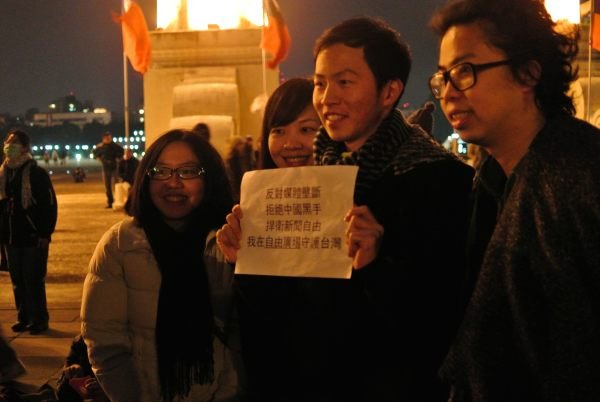 反媒體巨獸青年聯盟號召全國各地大專院校學生,在自由廣場前參加一場民主盛會~反對媒體壟斷的跨年活動!寒冷的夜晚看到這群青年學子,為了捍衛台灣的民主自由,放棄與多數年輕人一樣去看煙火跨年倒數,而是在寒風中做著有意義的事,如果有更多的青年像他們一樣,台灣的未來才有希望,如此才不會辜負了先賢烈士為台灣的民主自由犧牲奉獻!(by 贊鵠)