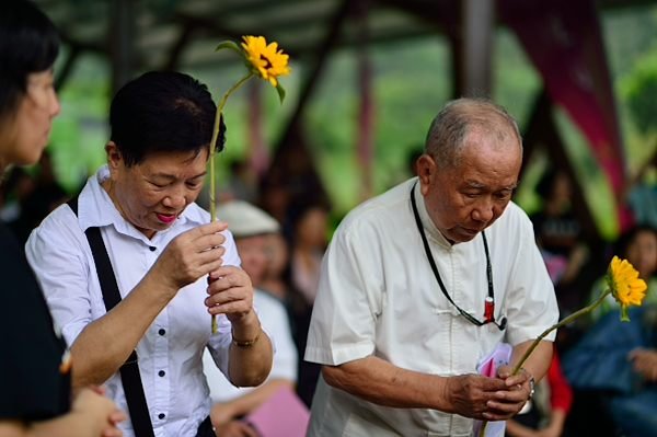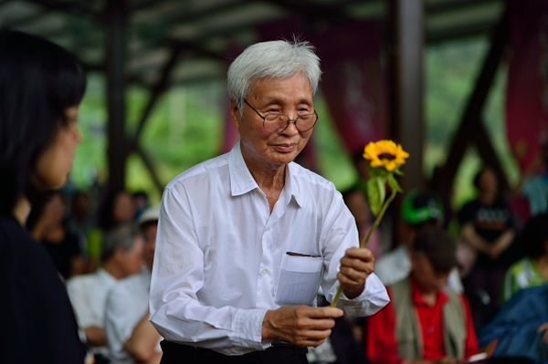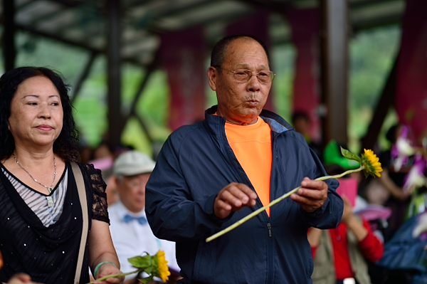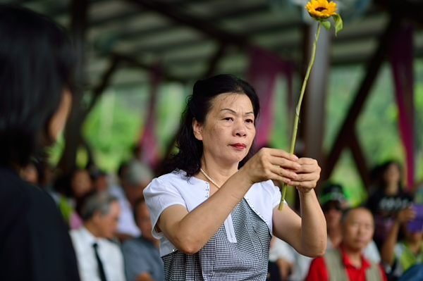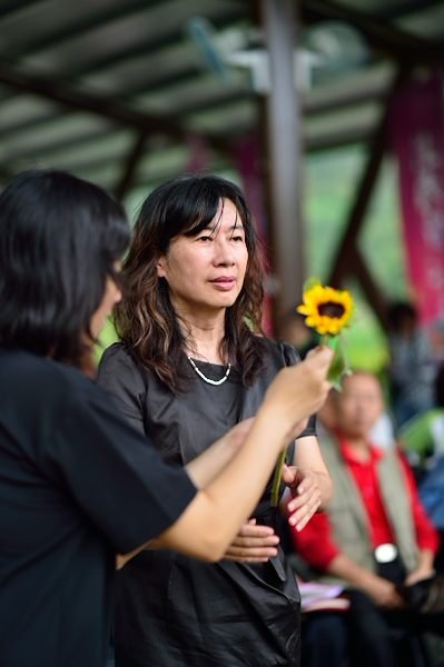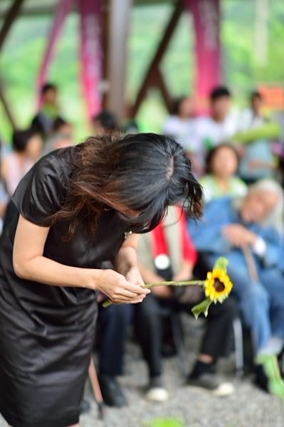 鳳凰颱風侵台的前夕,聖山天氣算是平靜,來賓致詞時偶爾搭配幾聲雷聲,彷彿天上也在看著這場典禮,為烈士獻上太陽花,紀念碑揭幕,緬懷烈士的勇氣,繼續為台灣獨立而奮鬥。