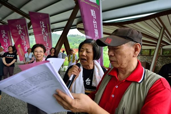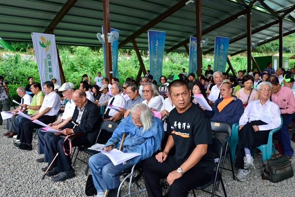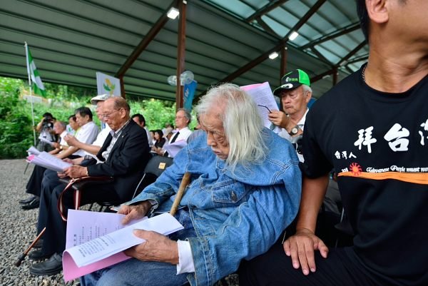 鳳凰颱風侵台的前夕,聖山天氣算是平靜,來賓致詞時偶爾搭配幾聲雷聲,彷彿天上也在看著這場典禮,為烈士獻上太陽花,紀念碑揭幕,緬懷烈士的勇氣,繼續為台灣獨立而奮鬥。