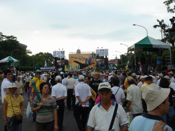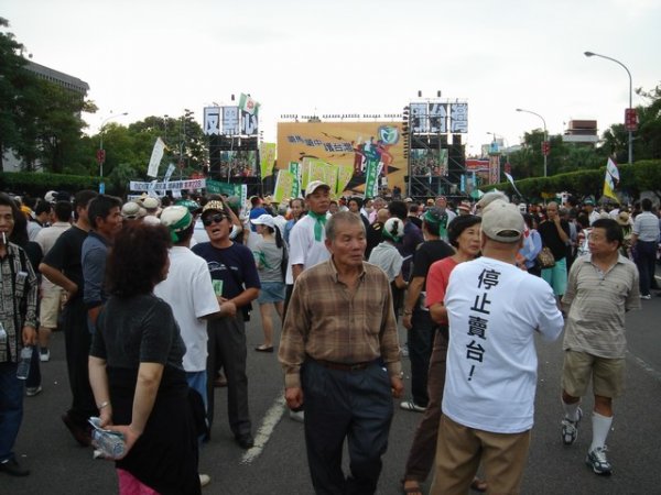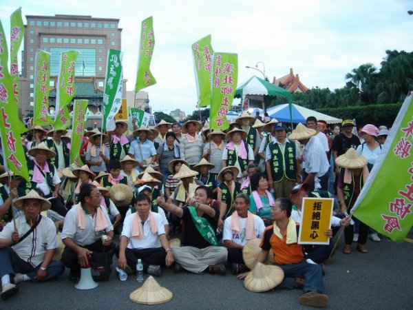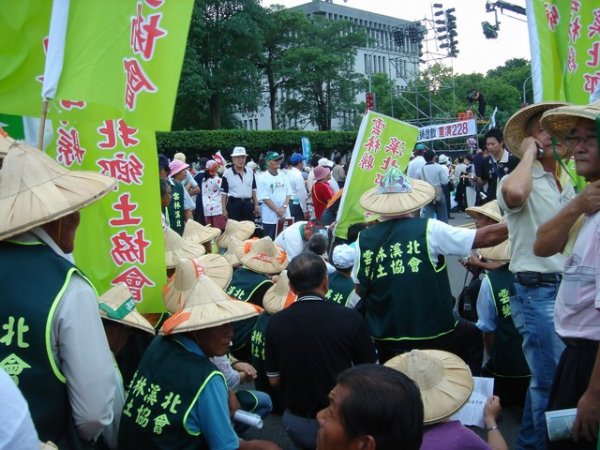 當第一個遊行隊伍抵達凱道時,十幾個警察佔據景福門圓環一半的道路,這些從雲林來帶著斗笠的長輩們只能從剩下一半的馬路慢慢的進入會場;