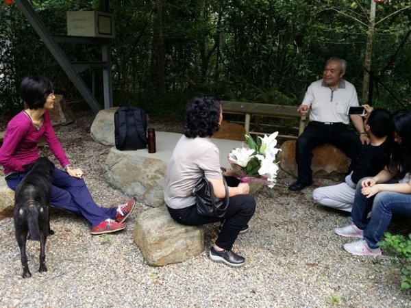 守護人權的台北市參議員徐春卿的家屬,從台北專程到訪聖山,分享許多徐春卿寶貴的史料。 在聖碑獻上純潔的百合花、於神社呢喃的跟爸爸說話、與大地董事長言談間的動容,一同見證聖山致力於公民教育的重要性。