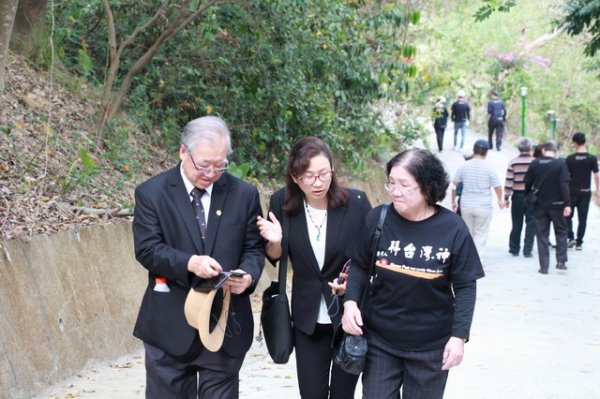 陳俊峰醫師(台灣大地文教基金會董事長).葉寶青醫師(台灣神道暨台灣聖山生態教育園區創始人楊緒東醫師夫人)。黃敏紅女士(獨立台灣會、史明教育基金會董事長).李政忠先生(獨立台灣會、史明教育基金會副董事長)。
