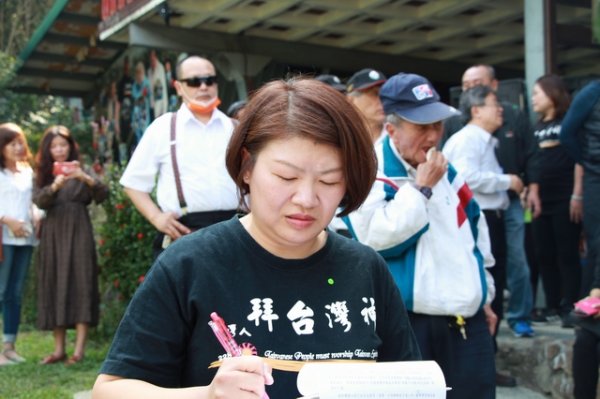 陳俊峰醫師(台灣大地文教基金會董事長).葉寶青醫師(台灣神道暨台灣聖山生態教育園區創始人楊緒東醫師夫人)。黃敏紅女士(獨立台灣會、史明教育基金會董事長).李政忠先生(獨立台灣會、史明教育基金會副董事長)。