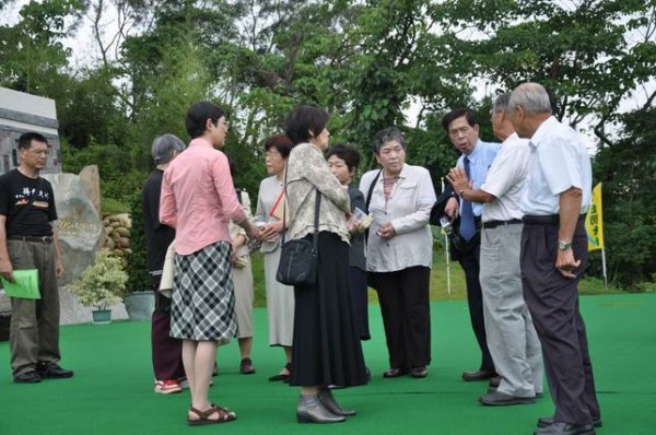 一群來自日本佐賀的日本朋友,特別來南投草屯參觀台灣聖山-生態教育園區,上天保佑,連綿的雨也在日本友人抵達前停止落下,志工們詳細地為日本朋友介紹台灣神的事蹟,另外也強調嘉南大圳之父-八田與一對台灣的卓越貢獻。
